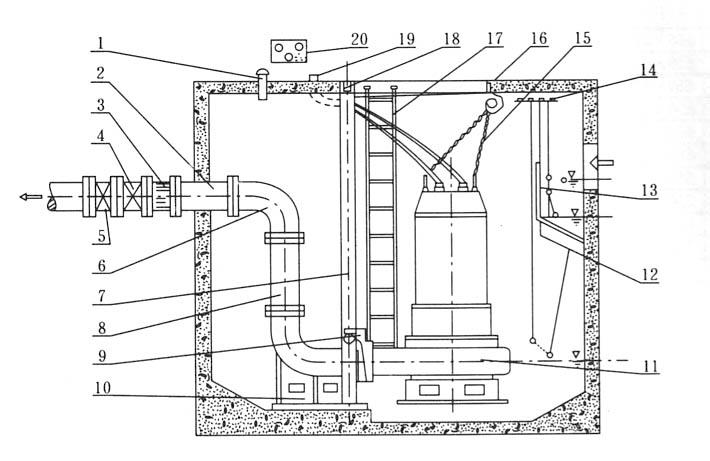 三利·JYWQ型自动搅匀式排污泵安装示意图: