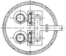 2、叶轮档转子轴中心打孔,其下面装有T字搅匀头,泵腔内压力水通过轴中心孔、搅匀头喷向污水池四周,如此结构会有污水杂质堵住水流孔无搅匀效果和搅匀头旋转时被纤维绳状物缠死而烧电机的弊端。
